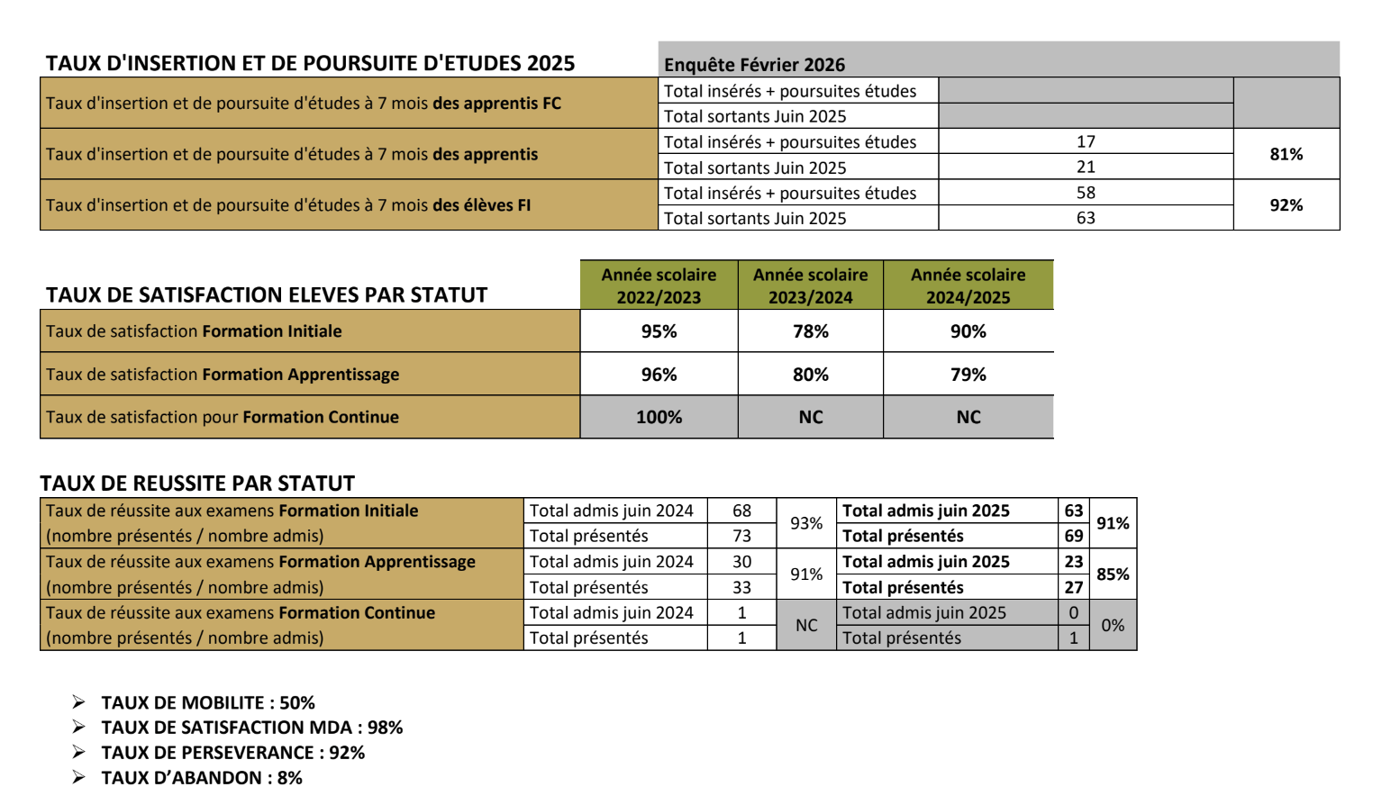 Taux de réussite 2025